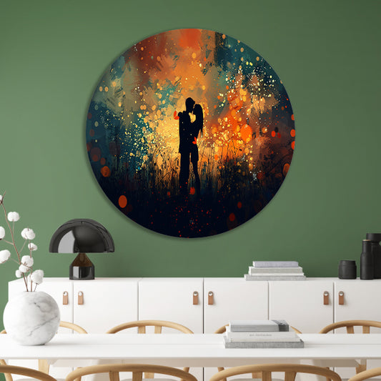 Omarmd Paar in Schemerlicht aluminium muurcirkel