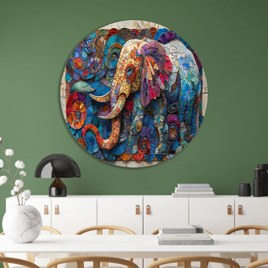 Kleurrijk Mozaïek van een Olifant met Bloemen aluminium muurcirkel