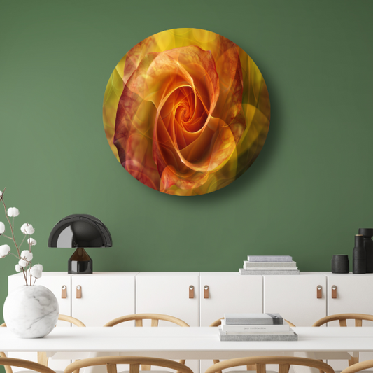 Draaiende Bloem in Vurige Kleurenpracht aluminium muurcirkel