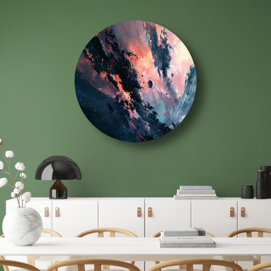 Explosieve Kosmische Dans in Kleur aluminium muurcirkel