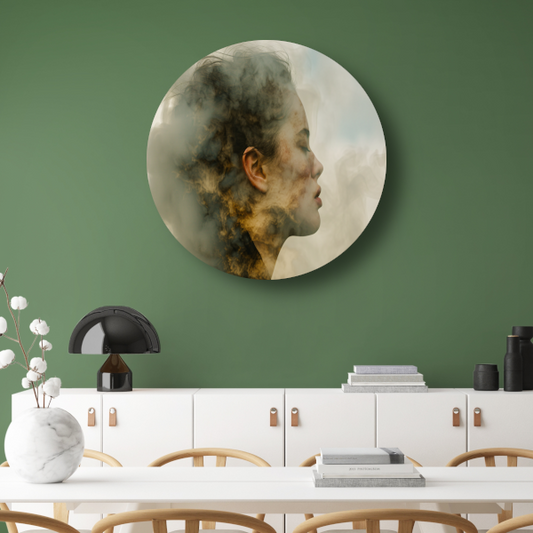 Vrouw Gevangen in Zachte Rooknevels aluminium muurcirkel