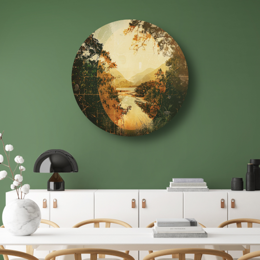 Weerspiegeling van Herfst in Sepia Tinten aluminium muurcirkel