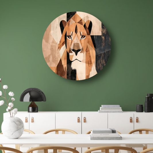 Geometrische Abstracte Leeuwenkop Art Deco aluminium muurcirkel
