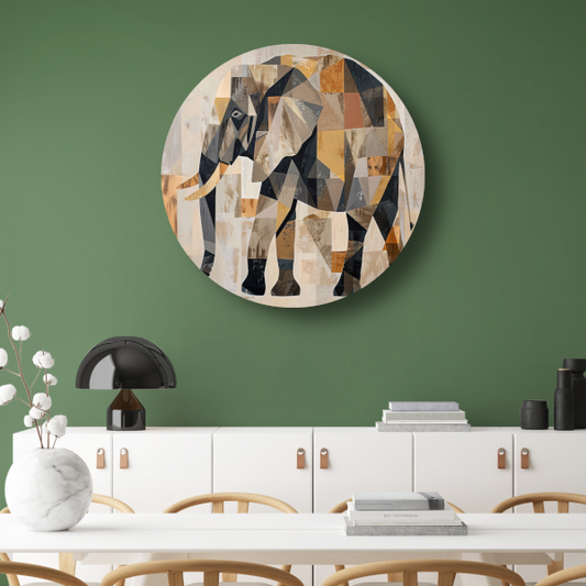 Abstracte Olifant in Geometrische Harmonie aluminium muurcirkel