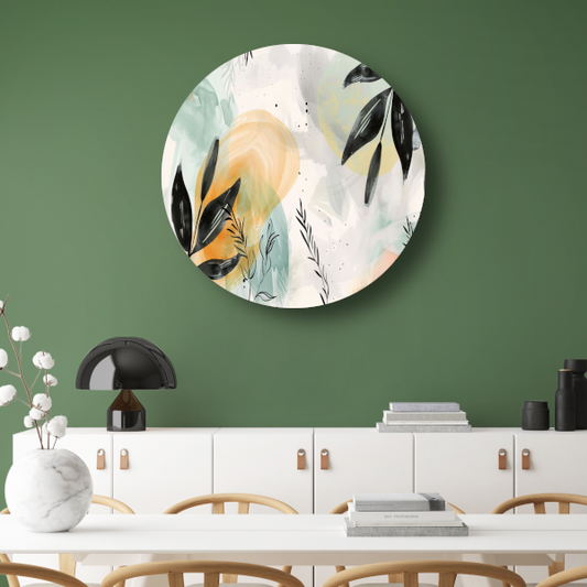 Abstract Aquarel Bladeren in Pastelkleuren aluminium muurcirkel