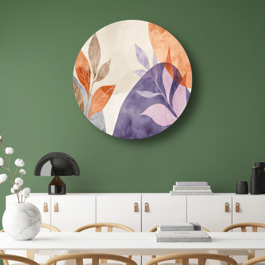 Abstracte Waterverf Bladeren in Warme Tinten aluminium muurcirkel