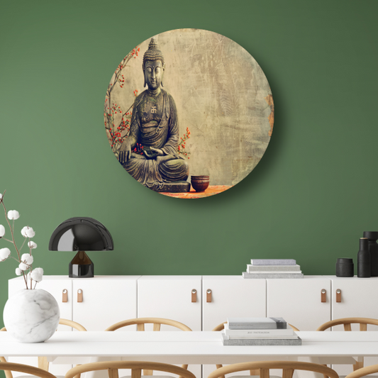 Harmonieuze Boeddha met natuur en vlinders aluminium muurcirkel