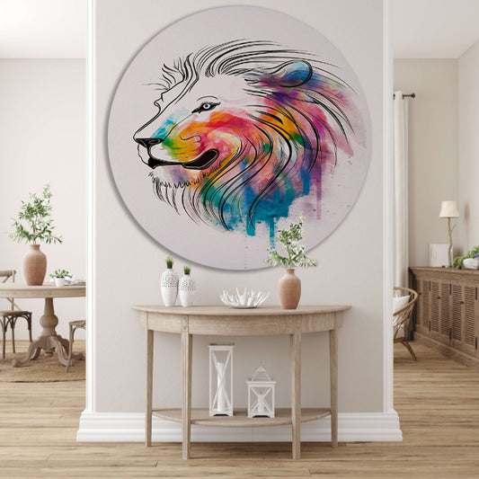 Abstracte aquarel leeuw in kleur aluminium muurcirkel