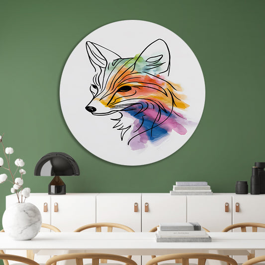 Abstracte waterkleur vos in lijnkunst aluminium muurcirkel