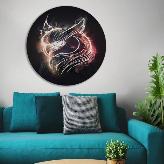 Uil van Vuur en Schaduw - Krachtige Kunst aluminium muurcirkel