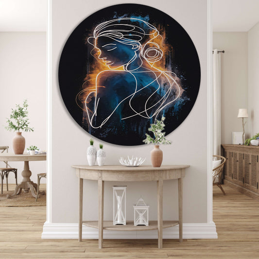 Kosmische lijnkunst portret van vrouw aluminium muurcirkel