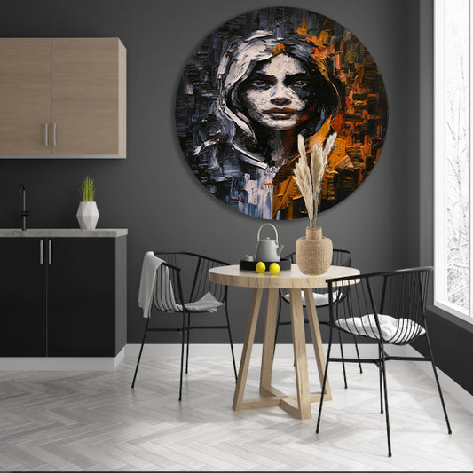 Dynamisch Abstract Portret met Expressieve Kleuren aluminium muurcirkel