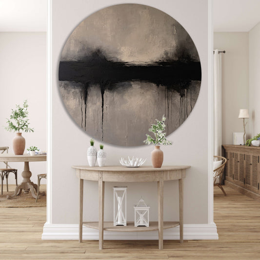 Minimalistische Abstractie in Zwart en Pastel aluminium muurcirkel
