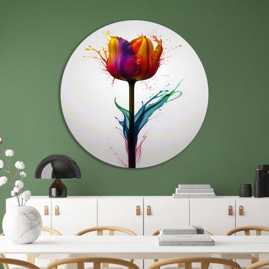Abstracte kleurrijke tulp in vloeibare stijl aluminium muurcirkel