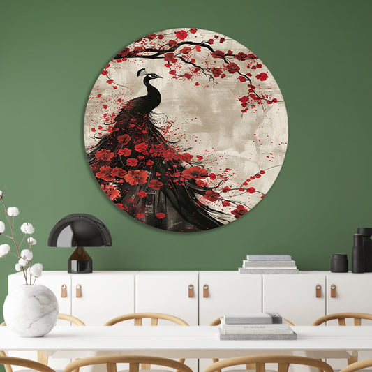 Elegante pauw met rode bloemen aluminium muurcirkelNormale prijs Vanaf €49,95Normale prijsEenheidsprijs / per-