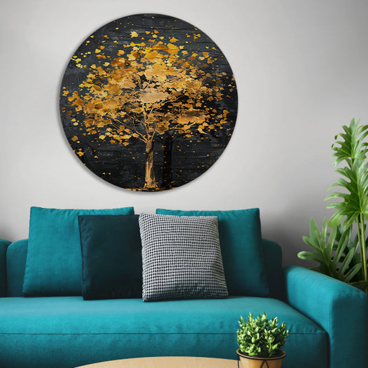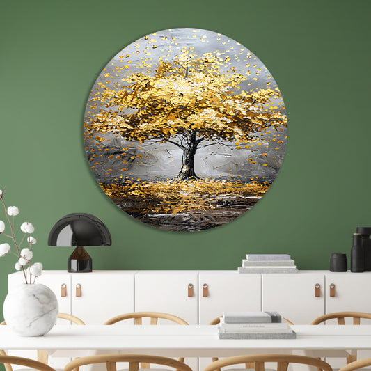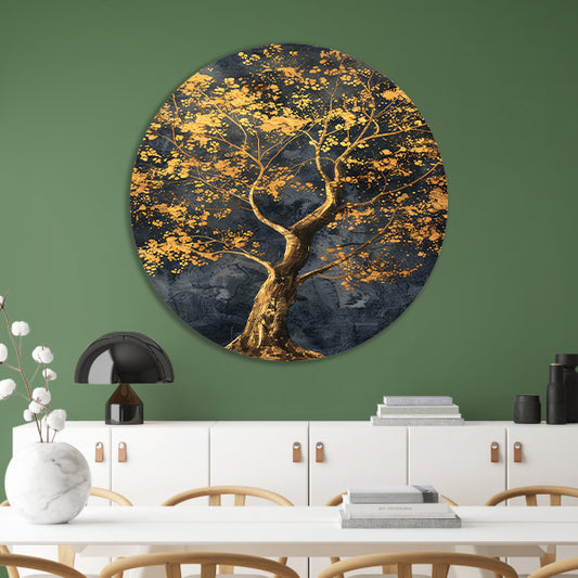 Boom met gouden bladeren in abstracte stijl aluminium muurcirkel