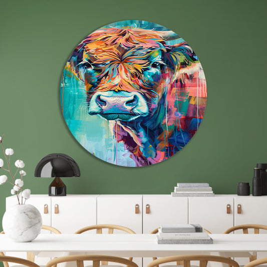Abstracte Kleurrijke Hooglander met Dynamische Kleuren aluminium muurcirkel