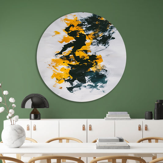 Expressieve abstracte kunst met silhouetten aluminium muurcirkel