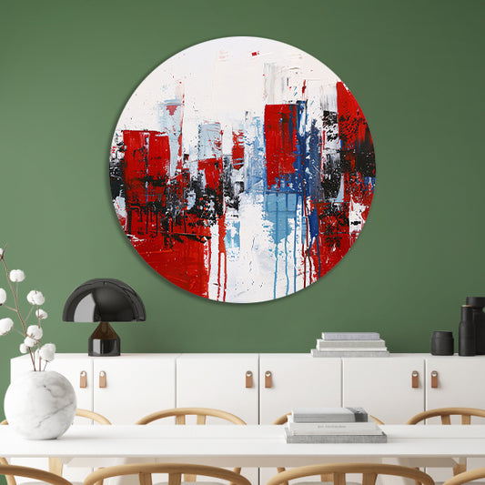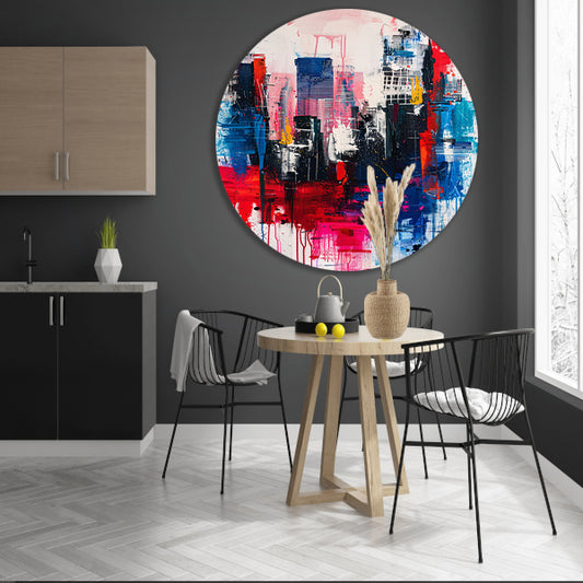 Abstract schilderij van stadsgezicht met kleuren aluminium muurcirkel