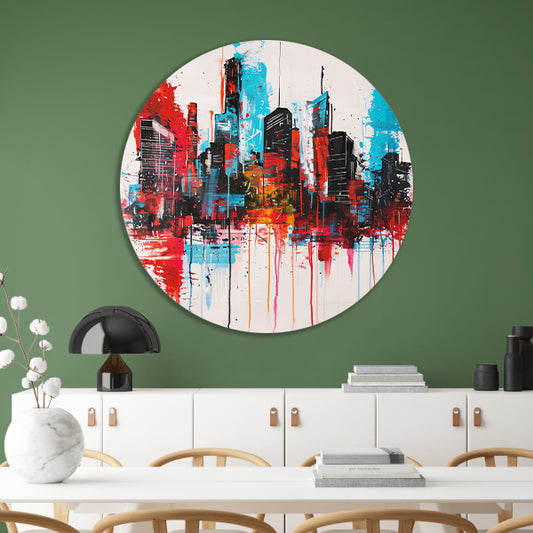 Abstract stadsgezicht met levendige kleuren aluminium muurcirkel