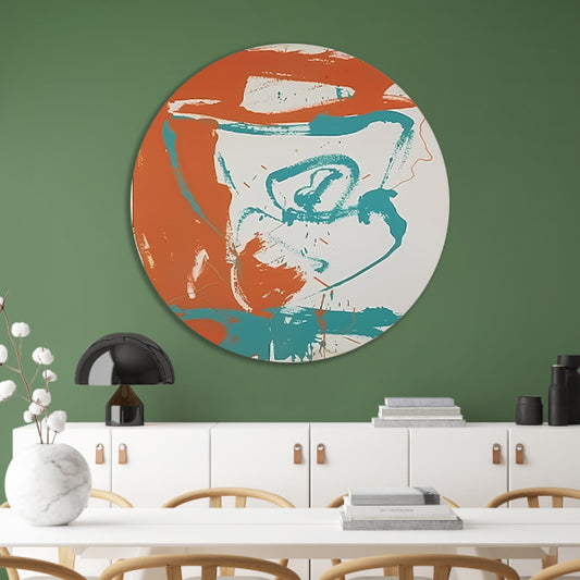 Abstract dynamisch schilderij met levendige kleuren aluminium muurcirkel