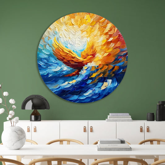 Kleurrijk abstract schilderij van vliegende adelaar aluminium muurcirkel