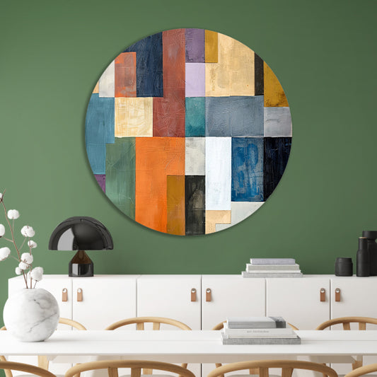 Abstracte kleurrijke rechthoeken met texturen aluminium muurcirkel
