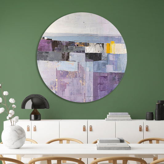 Moderne abstracte skyline met paarse tinten aluminium muurcirkel