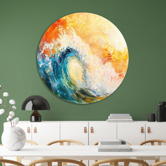 Kleurrijke abstracte schilderij van oceaangolf aluminium muurcirkel