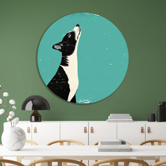 Minimalistische illustratie van een hond in kleur aluminium muurcirkel