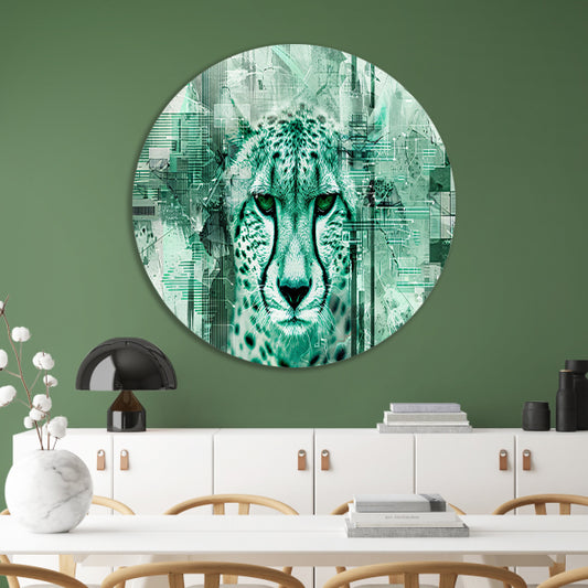 Digitale cheetah kunst met abstracte patronen aluminium muurcirkel