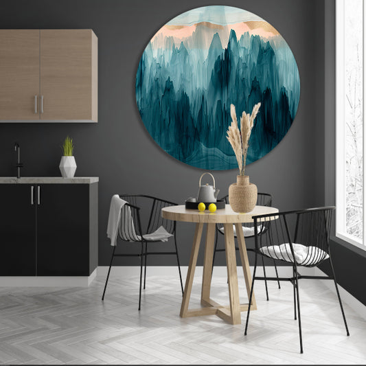 Abstracte bergen in blauw en turquoise aluminium muurcirkel