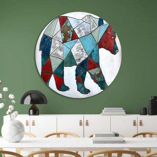 Geometrische beer in kleurrijke moderne kunst aluminium muurcirkel