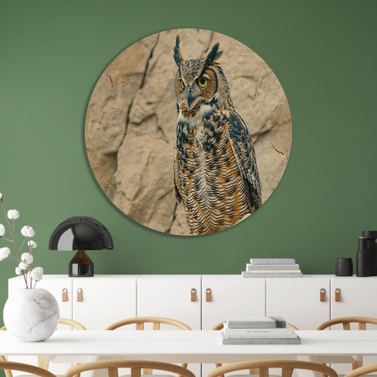 Majestueuze uil in abstracte sepia stijl aluminium muurcirkel
