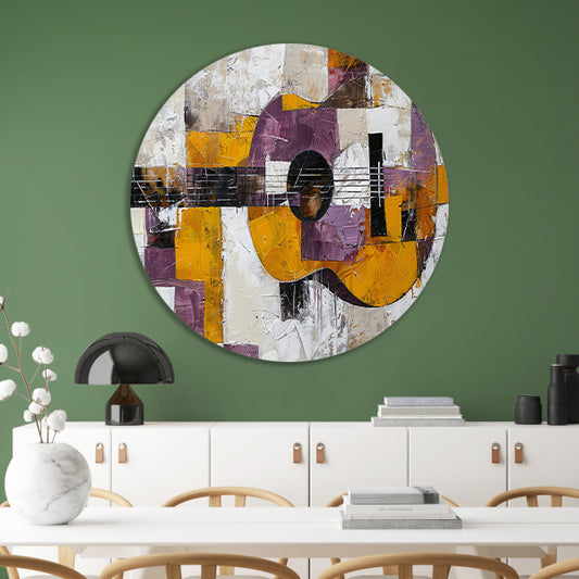 Abstracte kleurrijke gitaar schilderij voor interieur aluminium muurcirkel