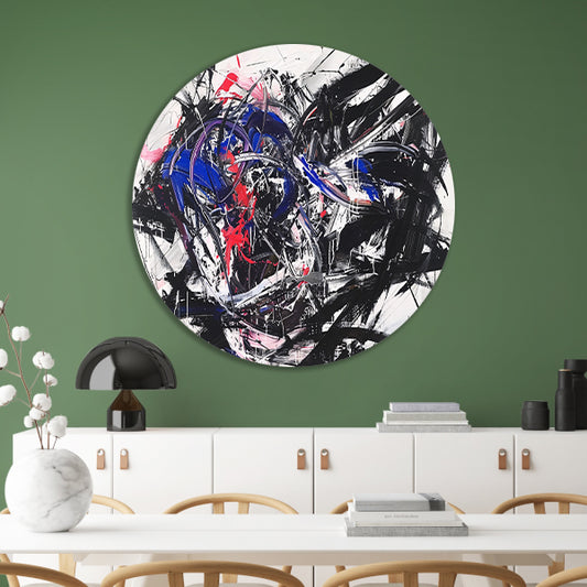 Dynamisch abstract kunstwerk met levendige kleuren aluminium muurcirkel