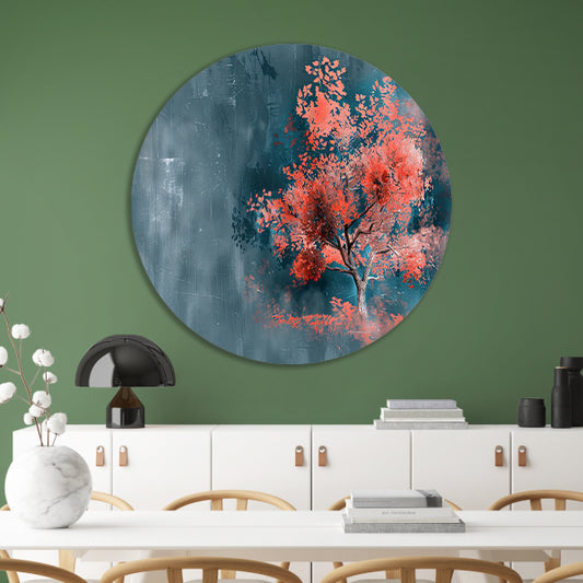 Kleurrijke abstracte bos schilderij in herfst aluminium muurcirkel