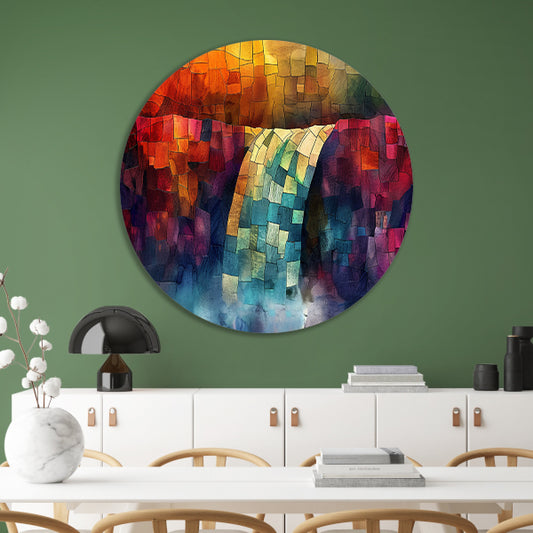 Kleurrijke digitale mozaïek waterval kunst aluminium muurcirkel