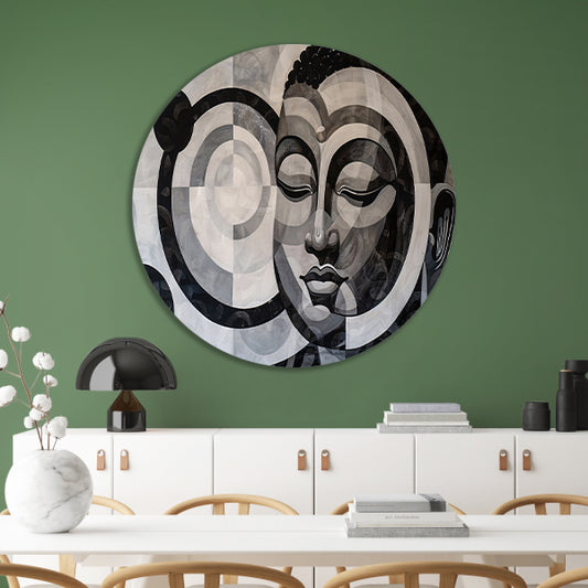 Surrealistisch Boeddha ontwerp met geometrische patronen aluminium muurcirkel