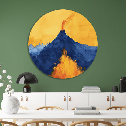 Abstracte schilderij van uitbarstende vulkaan aluminium muurcirkel