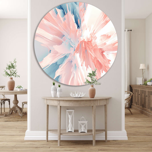 Abstract schilderij met zachte kleuren en dynamiek aluminium muurcirkel