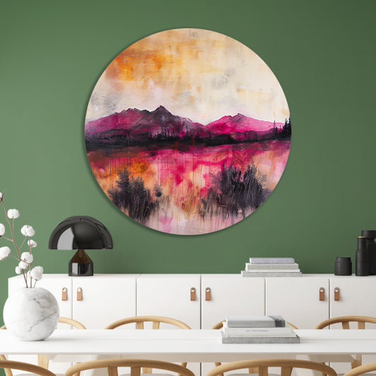 Kleurrijk abstract berglandschap met natuur aluminium muurcirkel