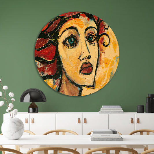 Expressief, surrealistisch portret van een vrouw aluminium muurcirkel