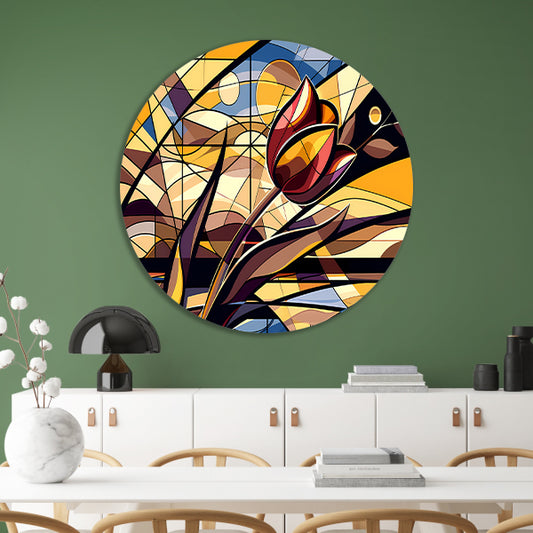 Kleurrijke abstracte tulpenkunst in kubistische stijl aluminium muurcirkel