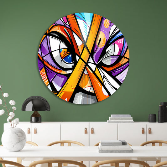 Kleurrijke abstracte silhouetten in dynamisch ontwerp aluminium muurcirkel