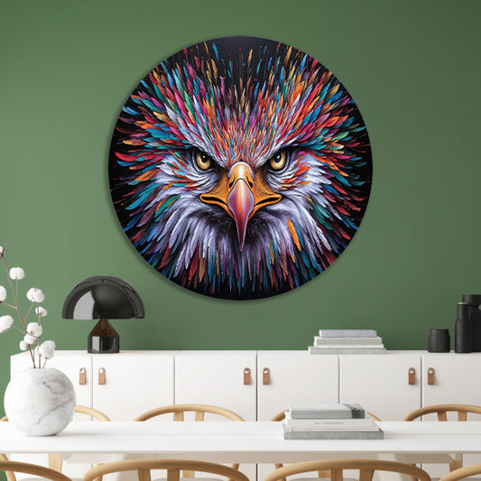 Kleurrijke psychedelische adelaar print voor inrichting aluminium muurcirkel
