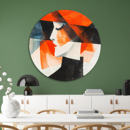 Abstracte kunst van vrouw met hoed aluminium muurcirkel