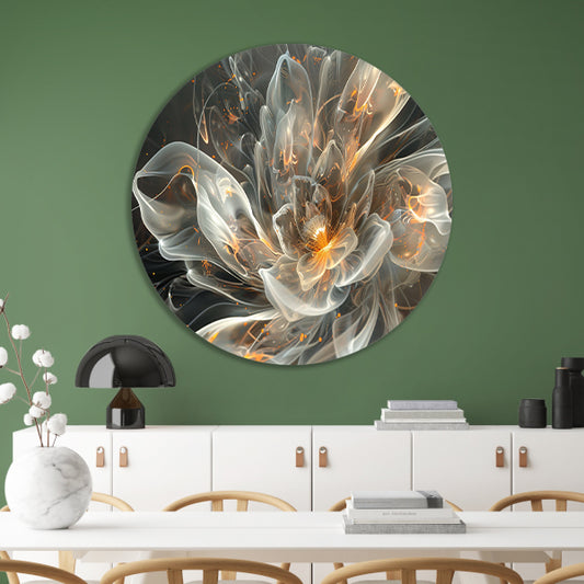 Abstracte digitale bloem met vurige accenten aluminium muurcirkel