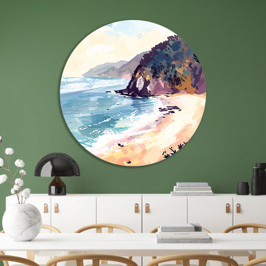 Minimalistisch schilderij van strand bij zonsopgang aluminium muurcirkel