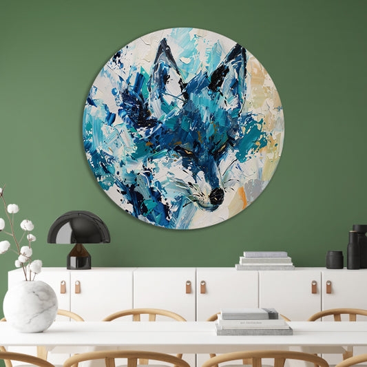 Abstract schilderij van een dynamische vos aluminium muurcirkel